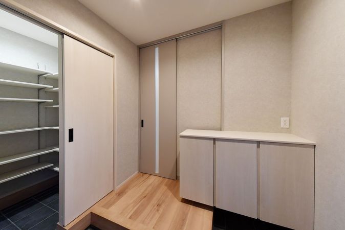 玄関はL字型の框(かまち)を採用。
