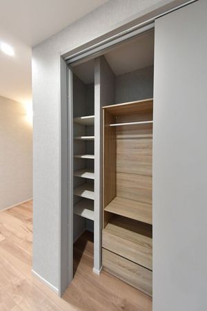 オープン収納を採用し、見せる収納で楽しめるお部屋になっています。