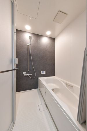 お風呂はあえて鏡や棚を設けず、最小限の設備に。