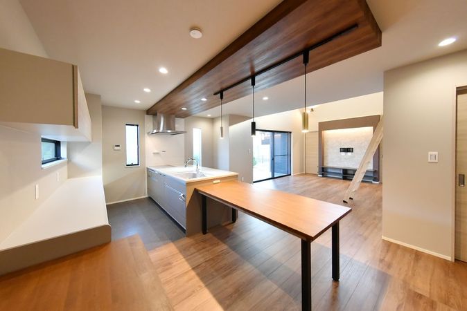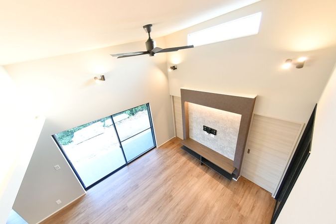 リビングは天井を高く設け、ゆったりとした開放感が魅力。