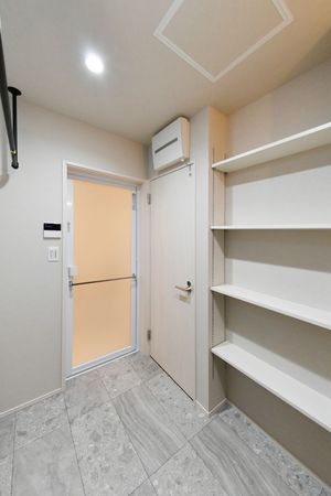 花粉や雨の付いた上着を室内に持ち込まずに収納でき、空間もすっきりと保てます。