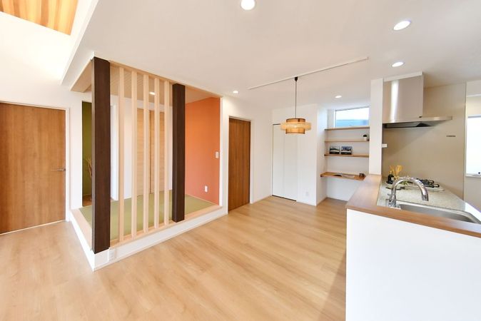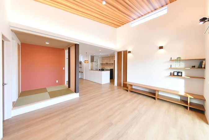 リビングの一角には小上がりの畳スペースを設け、