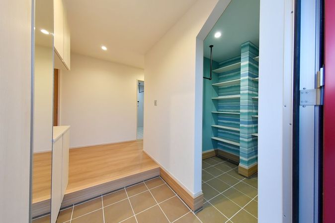 玄関やシューズクロークには爽やかなカラーを採用し、